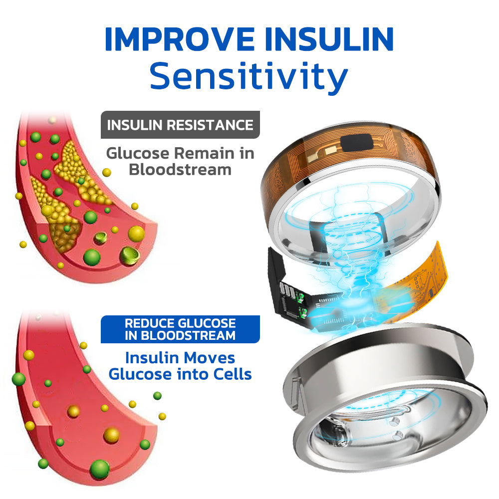 The Remifa™ SugarRing Health Control Electroacupuncture Ring to enhance insulin sensitivity. This method delivers controlled electrical pulses to stimulate muscle tissue, increasing glucose uptake by muscle cells. The muscle contractions facilitate efficient conversion of glucose into energy, reducing blood glucose levels.