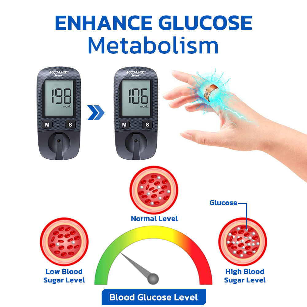 Muscles play a significant role in glucose metabolism by converting glucose into energy. The Remifa™ SugarRing Health Control Electroacupuncture Ring improves metabolism by triggering muscle contractions through electroacupuncture, promoting better glucose utilization and regulating blood glucose levels.