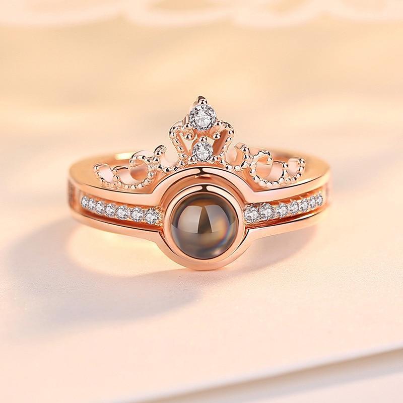 New 100 Languages "I Love You" Memory Crown Couple Rings Rose Gold Engagement Wedding Ring Set 925 Sterling Silver Women Jewelry