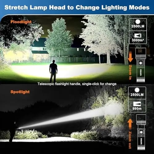(In addition, the flashlight can realize the free switching of far light and near light by rotating the head, which can meet the lighting needs in different scenes).