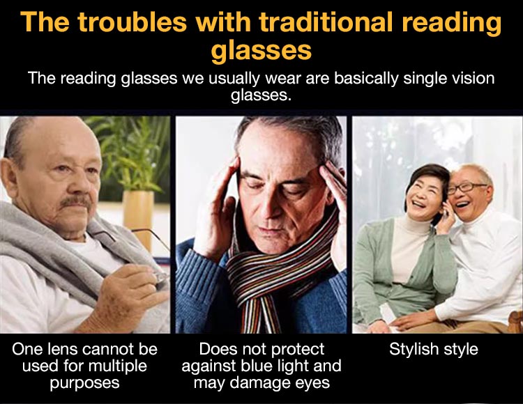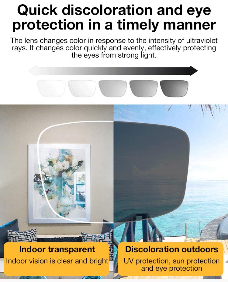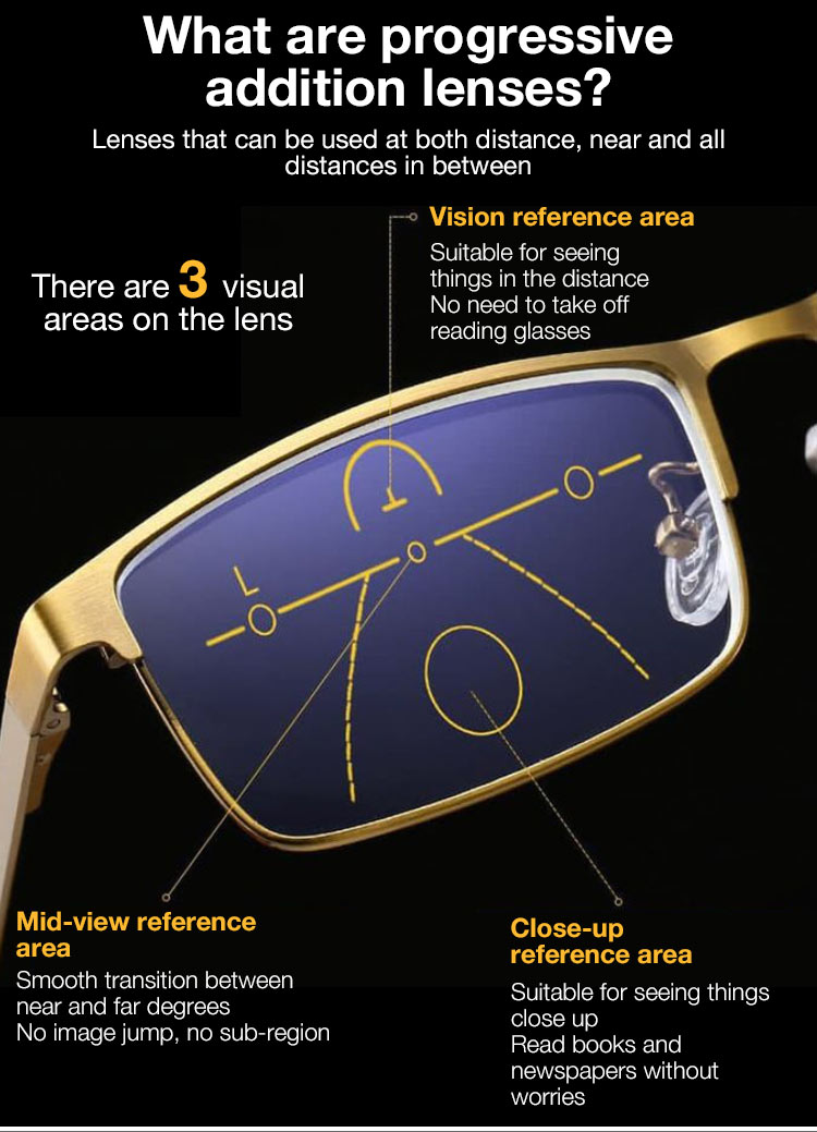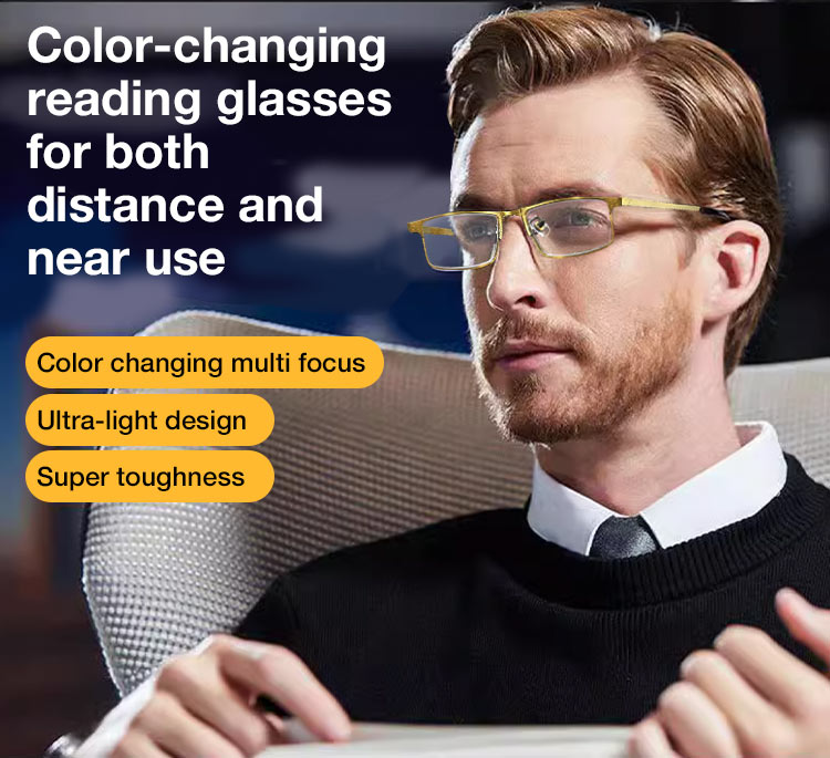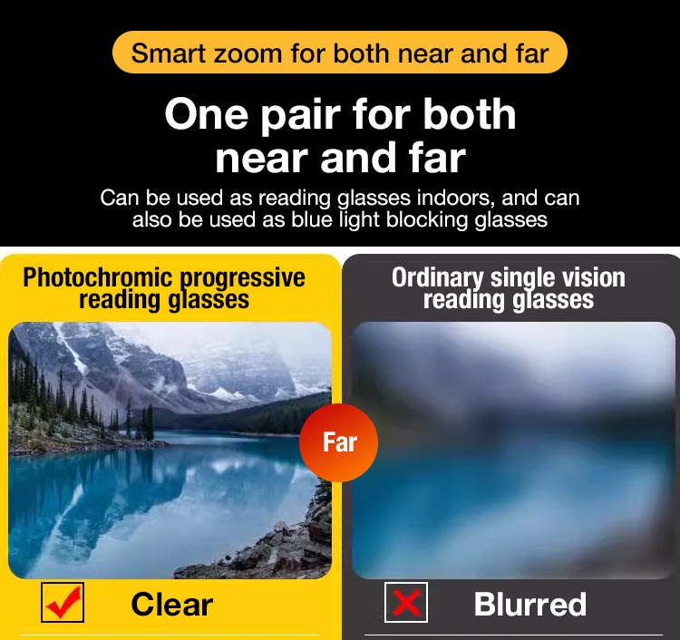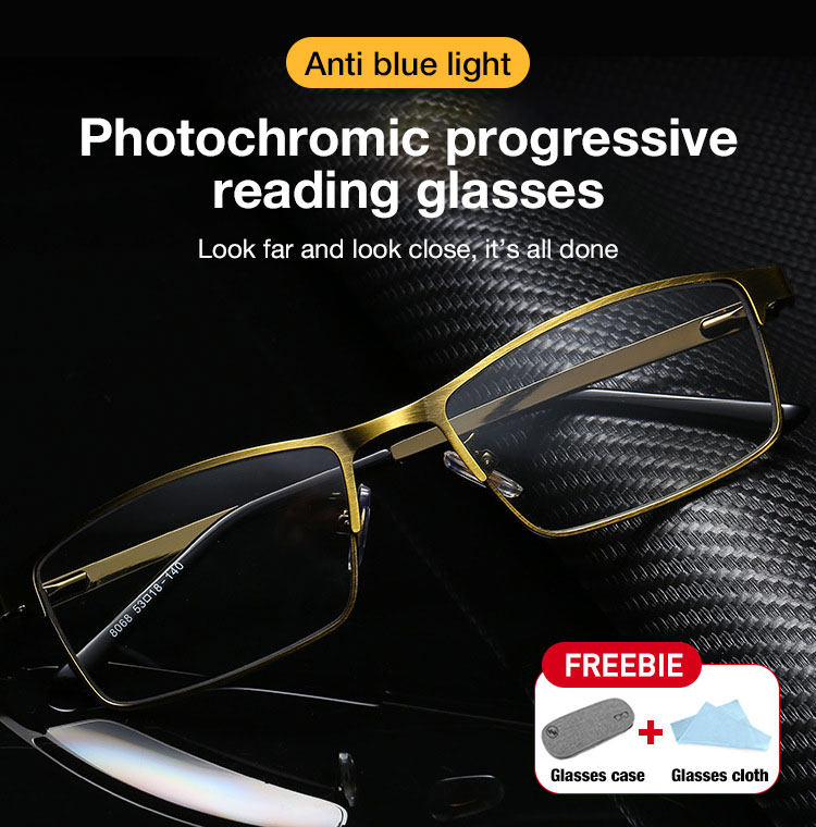 Photochromic progressive reading glasses-Light-sensing intelligent color change, usable from near and far, protecting your eyes