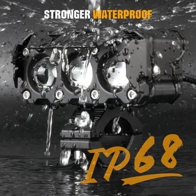 These pod lights are IP68 waterproof rated with an aluminum housing and a polycarbonate lens.