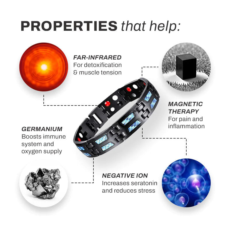The Ricpind TitanION BlueCarbon Lymphvity Bracelet enhances the circulation of blood and lymph. This helps eliminate toxins from the body that trigger fat production, while at the same time helping you maintain a healthy weight. The bracelet also emits negative ions which increase the permeability of the cell membrane, allowing tissue fluid to flow into lymphatic vessels and making them less prone to blockage.
