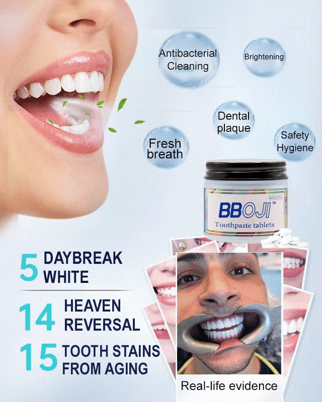 BBOJI Toothpaste Tablets ofer a fuoride-free, mess-free, and travel-fiendly alternative to tradiltional toothpaste. Made with 5% nano-hvdroxyapatite, thevprovide long-term enamel protection while gently removing stains and plaque. With a refreshing organic mint flavor and no artificial sweeteners, they leaveyour breath fresh and kissable.